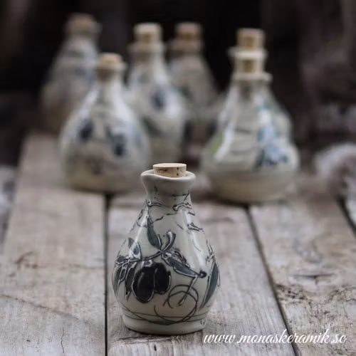 Med hjälp av flera olika tidskrävande tekniker skapar jag dessa kannor med sina intrikata mönster. Resan jag gör med varje produkt är så spännande; all dekoration och mönster görs på frihand och jag kan aldrig riktigt förutse hur en design och färgsättning av keramiken blir i slutändan. Det är först när jag gläntar på glasyrugnen som jag ser om den nya blandningen av underglasyren fungerade och om just det nya mönstret blev vackert.