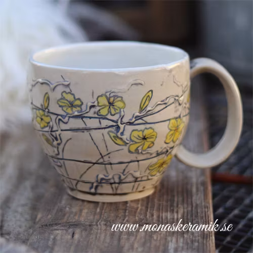 Fantasia - Temugg Gula små blommor- handgjord keramik i stengods